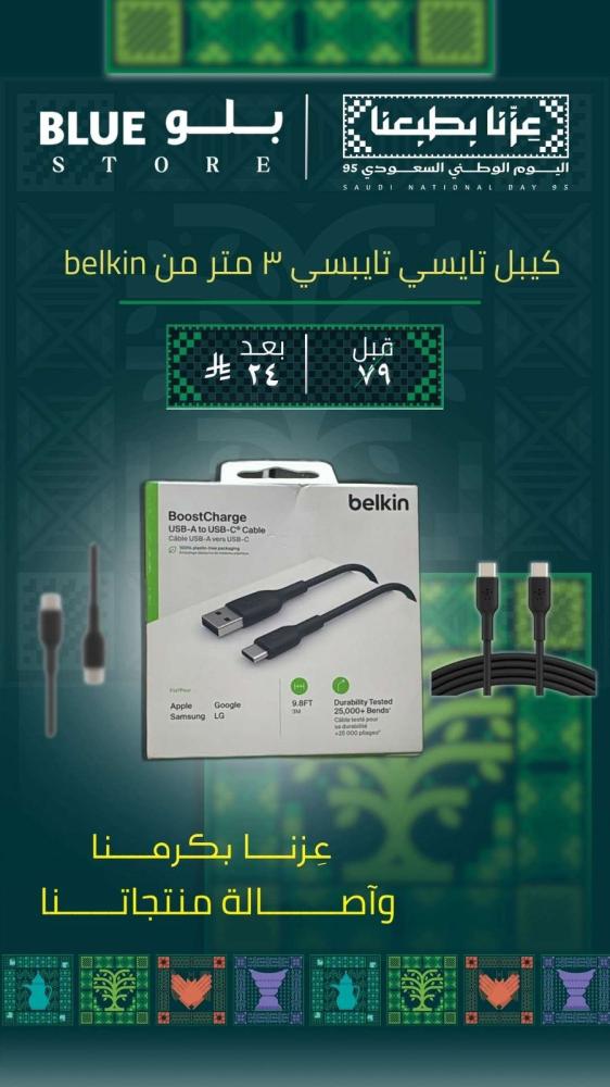 احصل على شحن سريع ومرونة أكبر مع بلكن كيبل USB-A إلى تايب سي بطول 3 متر. يوفر الكيبل أداءً عاليًا في الشحن ونقل البيانات، مع تصميم متين يتحمل الاستخدام اليومي. الطول الإضافي يمنحك حرية استخدام أجهزتك براحة أكبر سواء في المنزل أو المكتب أو السيارة.